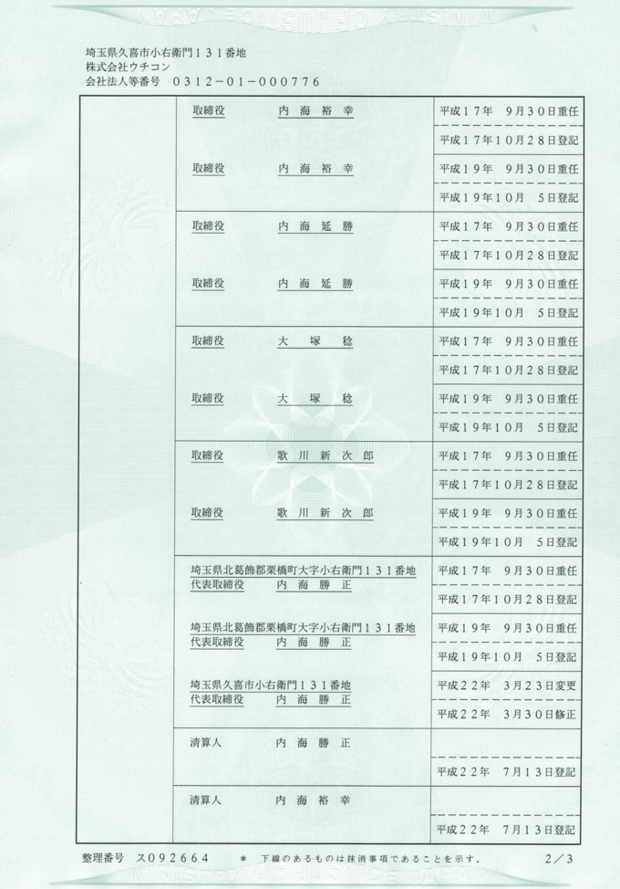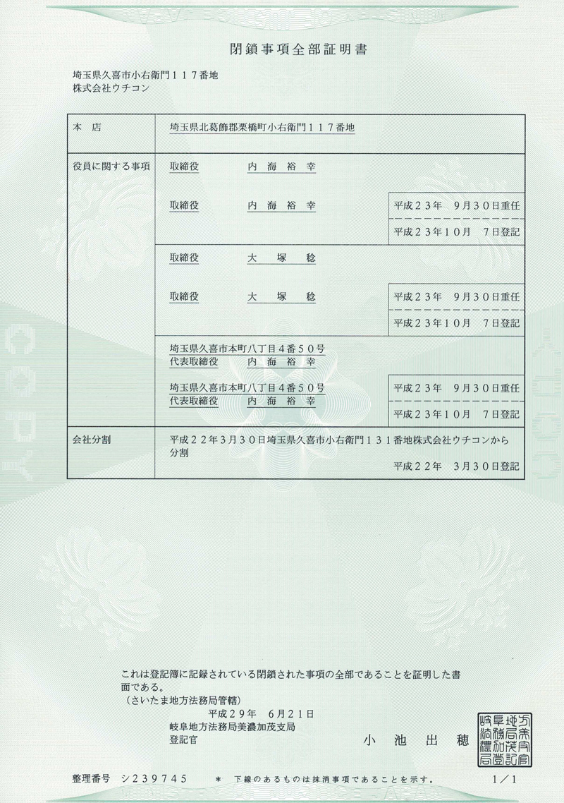 債務者ウチコン提出のフィリピン偽造文書(偽造文書行使) 押収品目録交付書(岐阜県警) |