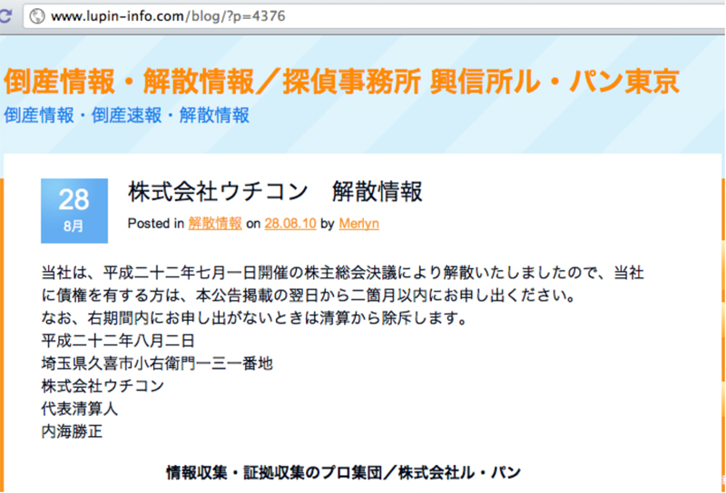 | 模倣品「消音側溝」の製造販売団体「全国消音側溝工業会」を 率いた事務局で冒認特許出願人の潟Eチコンが解散 |