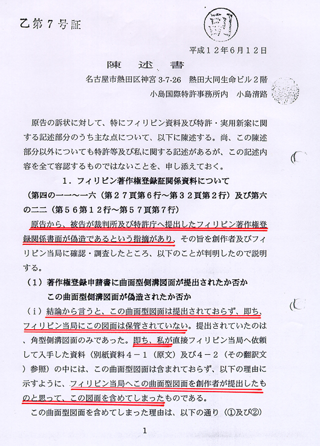| 悪徳弁理士 ・模倣者を告訴した証拠の事実(1) | |||||