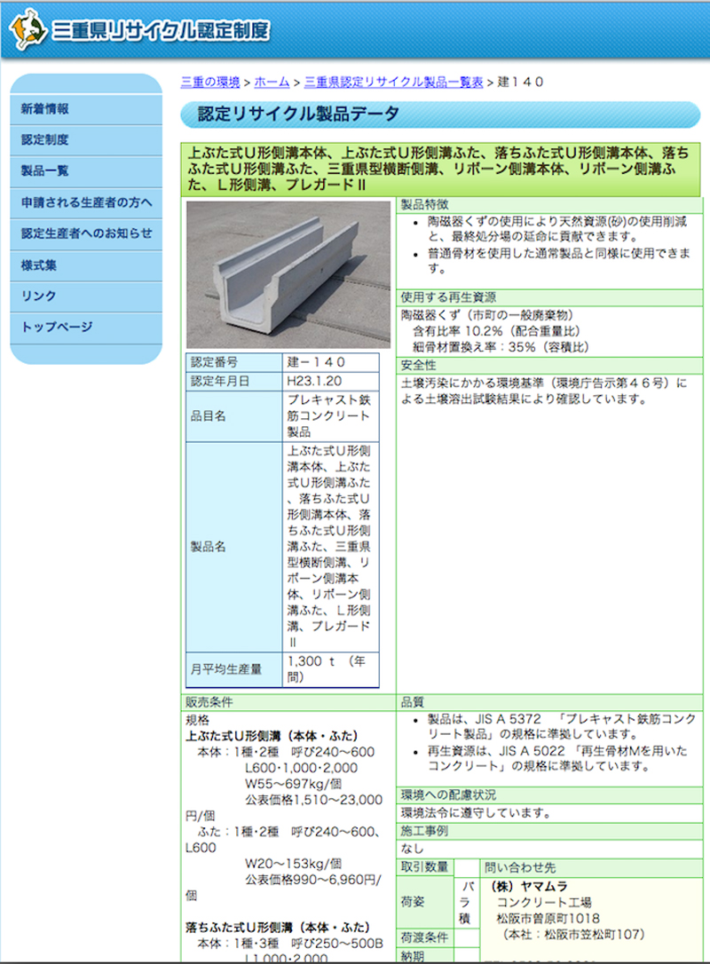 三重県 認定リサイクル製品データ (認定番号 建 - 140) (H23当時の開示資料)