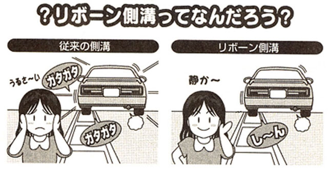 | 曲面側溝と蓋による騒音防止、線接触技術の生みの親 | ||